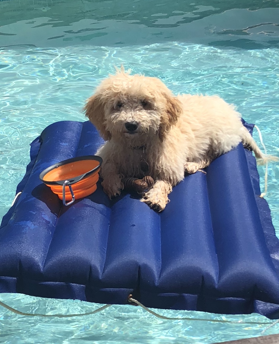 Bo is a miniature golden doodle. He is 7 months old and an excited fluff ball! Bo recently learned to swim when the two authors and their families took a trip to the beach! Dooley may be calm, but this little pup has lots of energy. He loves his owners and knows how to sit and occasionally come. He enjoys playing in the snow, his first time being in November. He loves running in his backyard. Go Bo!